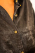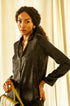 Camisa negra con textura finamente aterciopelada que la hace especial y diferente junto con sus botones de florecitas dorados envejecidos. Un "básico" fácil de combinar. Combínala con su pantalón tipo pijama para crear un look elegante, sofisticado y muy chic. Añade accesorios llamativos en tonos dorados para tus eventos de noche.