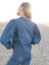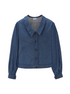 Denim jacket with puffed sleeves, V-neck and embroidery on the back.
