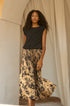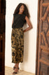 Falda midi plisada en tono oro viejo y negro con estampado abstracto. Corte favorecedor que se adapta a distintas siluetas. Un diseño elegante que da un aire moderno y sofisticado a cualquier look. Tejido ligero y caída natural que aporta movimiento mientras que los pliegues verticales aportan textura. Perfecta para combinar con nuestro top negro de lurex, camisas sencillas o Jerséis entallados. Ideal tanto para ocasiones casuales como para looks mas formales.