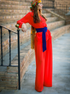 Flowing coral trousers. Elasticated waist and pockets, these comfortable, fresh trousers can be worn as a complete set with our coral shirt, combined with long necklaces, and can be worn from lunch to an event or to brunch on the beach with flat sandals.