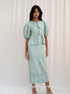 A very combinable top with our embroidered skirt as well as with our white and aqua linen trousers, jeans... sports shoes to give it a CHIC touch or for daytime events. the TOTAL LOOK top and embroidered skirt.