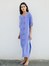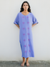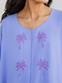 Vestido tipo Kaftan en color lila, con palmeras bordadas en la parte delantera, escote redondo.