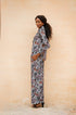 Pantalón estilo pijama con un llamativo estampado floral difuminado tipo acuarela. Tiene un corte de pierna ancha y el tejido es 100% viscosa muy fluido, suave y ligero. Un pantalón muy cómodo a la vez que elegante y muy fácil de combinar. Junto con su camisa hace un total look ideal para looks mas arreglados, jersey y zapato plano ideal para un look mas casual. Tiene la ventaja de ser un conjunto atemporal. Su cintura elástica lo hace muy cómodo y su bolsillos laterales le dan un toque informal.